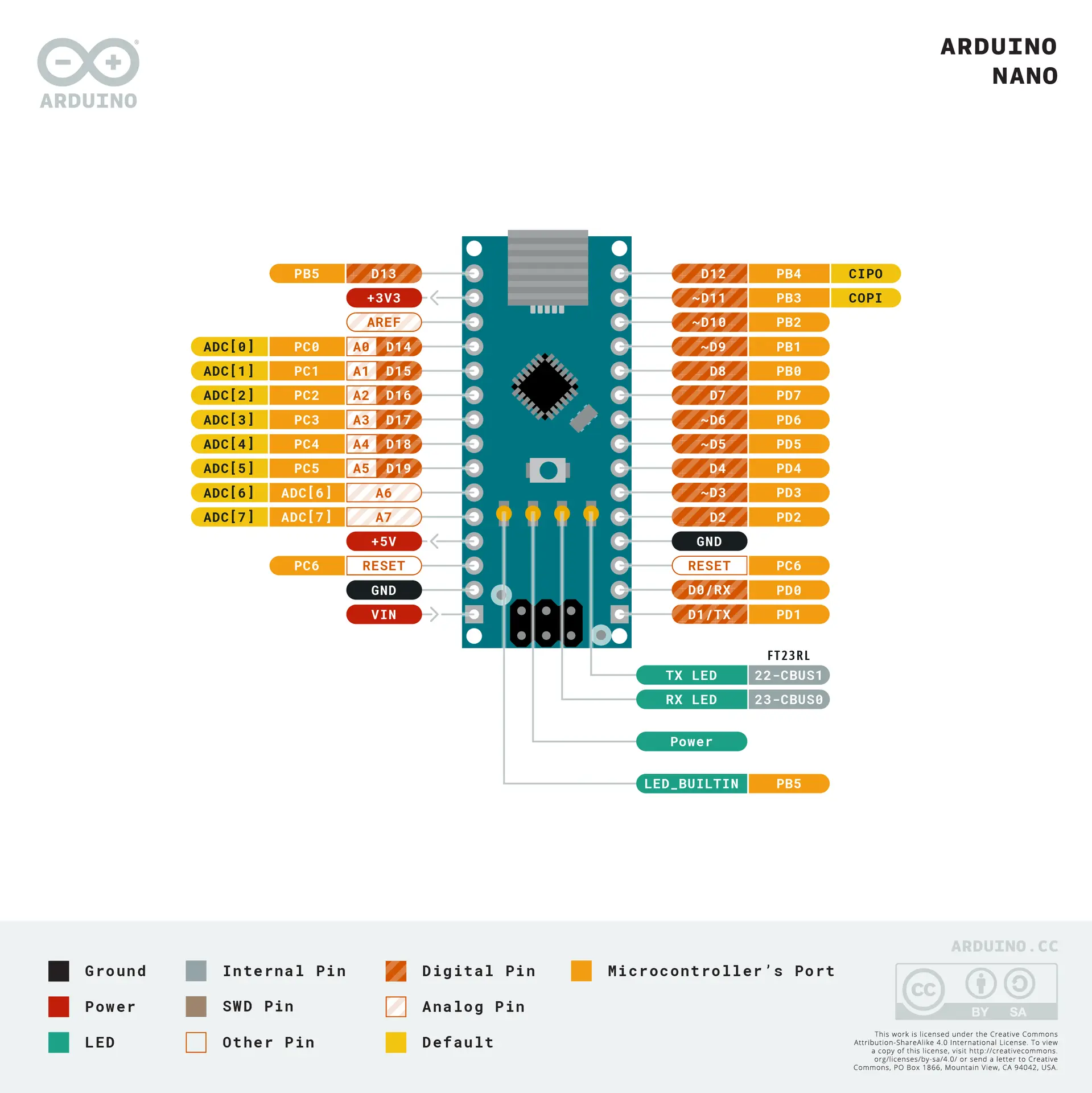The Arduino Nano is open-source hardware! You can build your own board using the following files: